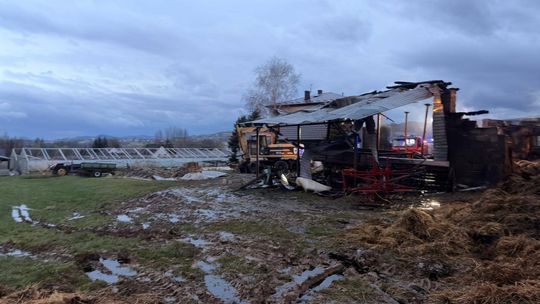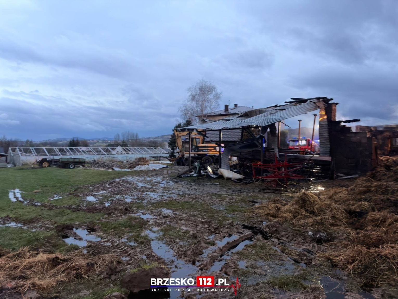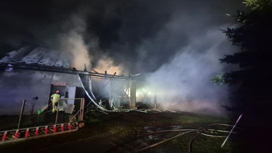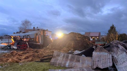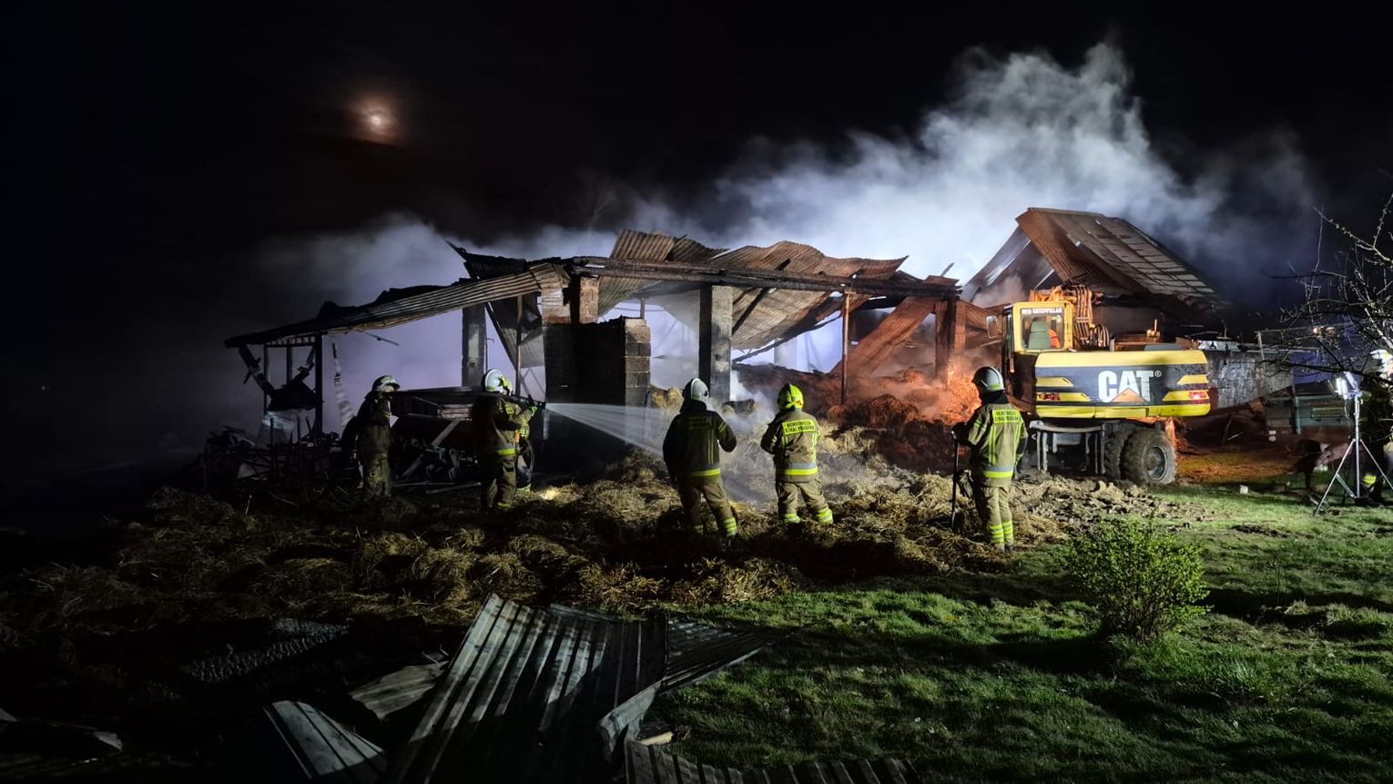 Strażacy borykali się z trudnymi działaniami gaśniczymi, które trwały do rana, ze względu na składowany w budynku materiał łatwopalny w postaci siana i słomy. Woda była dostarczana z sieci wodociągowej oraz dowożona beczkowozami z pobliskiego stawu, strażacy pracowali w aparatach zapewniających ochronę dróg oddechowych. Po ugaszeniu pożaru przystąpiono, przy użyciu sprzętu budowlanego w postaci ładowarki-koparki, do dogaszania pogorzeliska i rozbiórki spalonych elementów konstrukcji. Niestety przyczyny pożaru nie są znane, policja będzie prowadzić dochodzenie w tej sprawie, ale już widać że straty są ogromne.