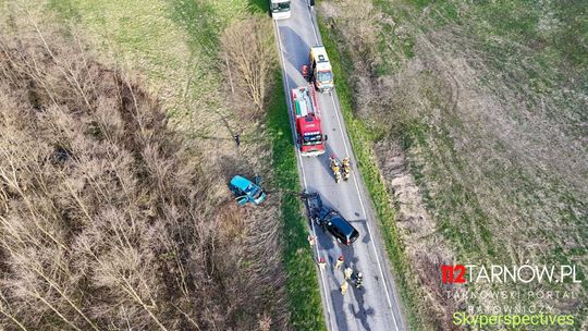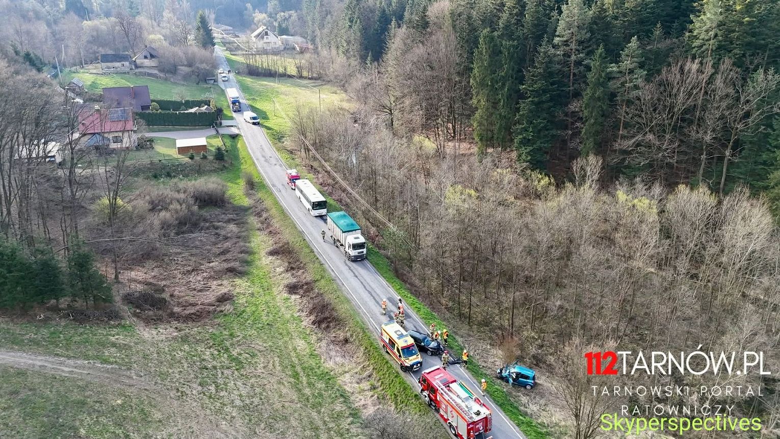 Do zdarzenia drogowego doszło dziś, około godziny 7:00 rano, w miejscowości Jodłówka Tuchowska w powiecie tarnowskim. W wyniku zderzenia jeden z samochodów wypadł z drogi i zaparkował na pobliskiej łące.