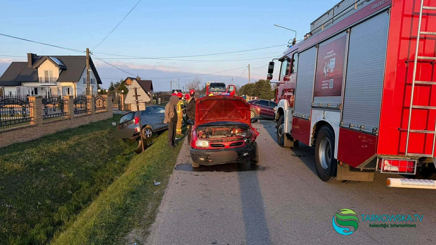 Na miejsce skierowano dwa zespoły ratownictwa medycznego, policję oraz trzy zastępy straży pożarnej. Dwa z uszkodzonych pojazdów wpadły do przydrożnego rowu.