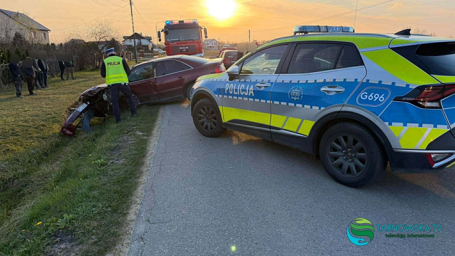 Droga powiatowa jest całkowicie zablokowana. Służby prowadzą działania ratunkowe i zabezpieczające miejsce zdarzenia. Policja ustala okoliczności zdarzenia.