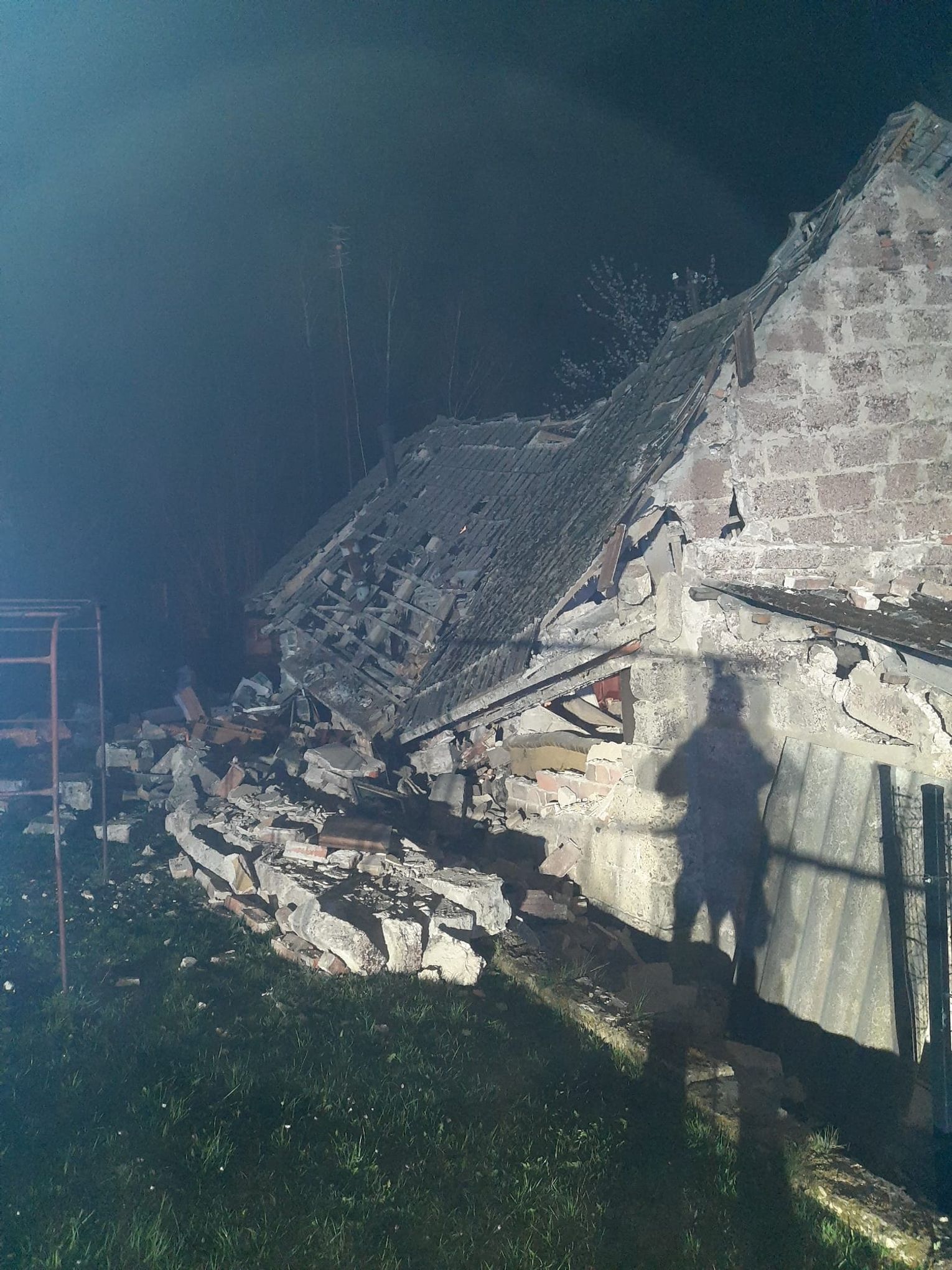 Zgłoszenie o zdarzeniu wpłynęło do służb ratunkowych tuż przed godziną 23:00. Na miejsce natychmiast skierowano zastępy Państwowej Straży Pożarnej oraz jednostki Ochotniczej Straży Pożarnej. Po przybyciu ratownicy potwierdzili rozległe zniszczenia budynku, którego znaczna część uległa zawaleniu wskutek eksplozji.