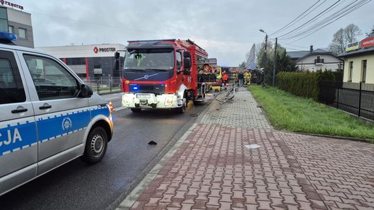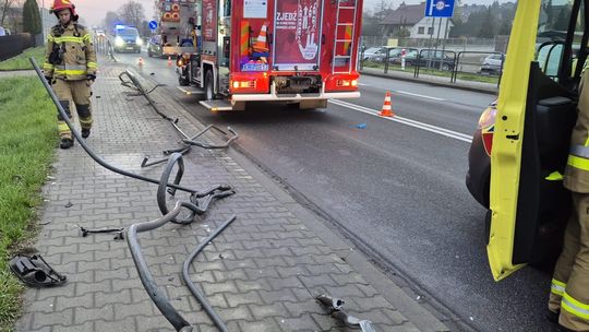Samochód dostawczy przewrócony na boku, brak osób poszkodowanych, utrudnienia przed wjazdem do Brzeska od strony Jadownik - przekazał - kpt. Dominik Machał, oficer prasowy PSP w Brzesku.