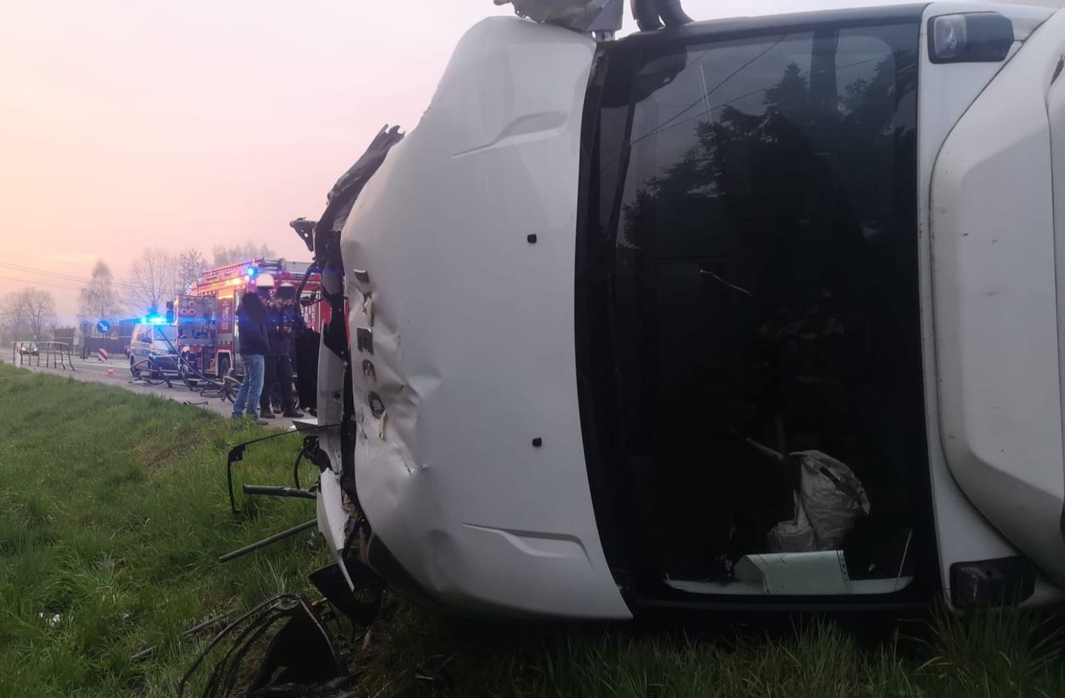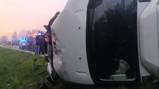 Służby zostały zaalarmowane o zdarzeniu drogowym na drodze krajowej 94 z udziałem jednego samochodu ciężarowego we wtorek 21 kwietnia wczesnym rankiem, na miejsce udały się zastępy straży pożarnej, pogotowie ratunkowe i policja. Na miejscu okazało się, że w wyniku zdarzenia, uszkodzona została infrastruktura drogowa, a samochód leży na boku blokując chodnik i jeden pas ruchu.