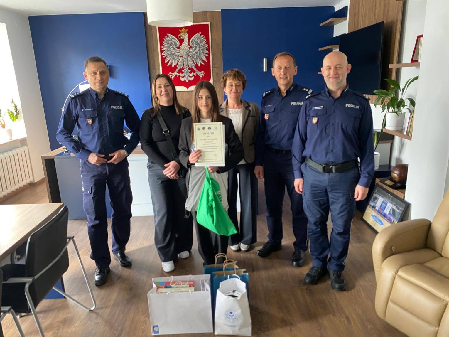 Nagrody i dyplom zwyciężczyni konkursu wręczyli Komendant Miejski Policji w Tarnowie insp. dr Bogumił Jedynak, I Zastępca Komendanta Miejskiego Policji Krzysztof Ryba oraz Naczelnik Wydziału Prewencji KMP Tarnów podinsp. Paweł Jantoń. Kierownictwo tarnowskiej jednostki złożyło laureatce gratulacje z okazji osiągnięcia tak dużego sukcesu w skali ogólnopolskiej, podkreślając jednocześnie rangę jej wyróżnienia w kontekście wysokiego poziomu artystycznego prac wszystkich uczestników.