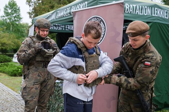 Na uczestników czekały m.in. ćwiczenia z udzielania pierwszej pomocy, prezentacje żołnierzy Wojsk Obrony Terytorialnej z pojazdem wojskowym i quadem, mobilny punkt rekrutacyjny, gogle VR, drukarka 3D w akcji oraz pokaz broni kolekcjonerskiej i strzeleckiej.