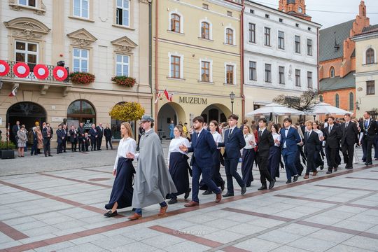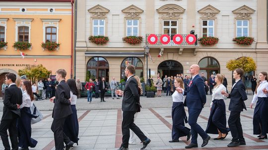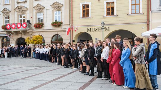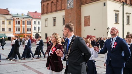 Po zakończeniu sesji uroczystości przeniosły się na tarnowski Rynek, gdzie uczniowie i mieszkańcy wspólnie odtańczyli poloneza – symboliczny taniec wolności i jedności pokoleń.