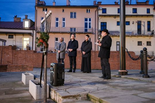 Dzisiejszego wieczoru, 17 grudnia, pod Bimą zapalono świece chanukowe. W uroczystości wziął udział prezydent Tarnowa Jakub Kwaśny, obecny był również rabin Tomer Rehovi, który przewodniczył obrzędowi. Wydarzenie wpisuje się w trwające w mieście obchody Chanuki.