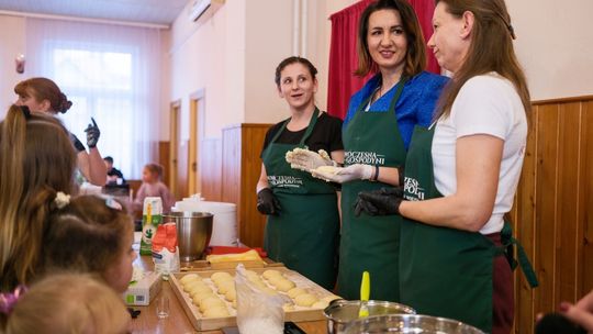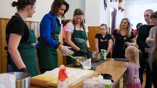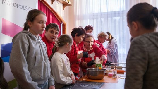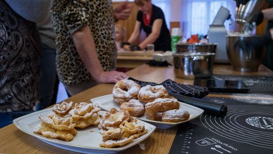 Na tym karnawałowym spotkaniu bawili się mieszkańcy Tymowej w każdym wieku! W międzypokoleniowej integracji pomogły słodkie przysmaki w lukrze i cukrze pudrze, które uczestnicy wydarzenia wspólnie wyrabiali i smażyli. Pomagała im Marta Malec-Lech z zarządu województwa małopolskiego.