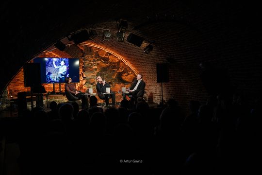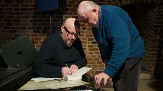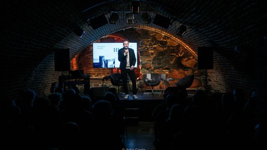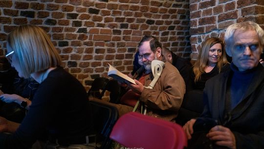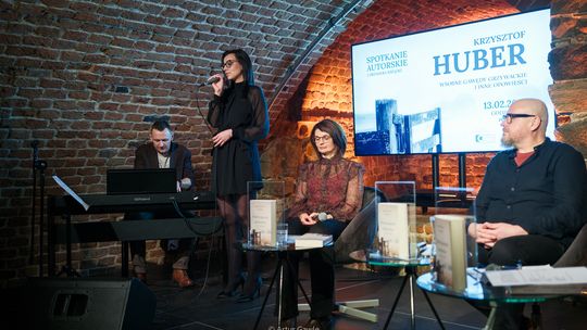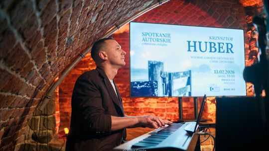 Wieczorem 13 lutego 2026 roku Piwnice przy Rynku 5 wypełniły się miłośnikami literatury na spotkanie autorskie i premierę „Wsobnych gawęd grzywackich i innych opowieści” Krzysztofa Hubera. Autor opowiedział o swojej prozie, a o kulisach jej tworzenia szczegółowo mówiła Aneta Pieprzycka w rozmowie prowadzonej przez Tomasza Kapturkiewicza. Atmosferę wieczoru wzbogaciły piękne występy wokalne Agnieszki Hajdugi i Sławomira Ramiana oraz akompaniament Grzegorza Gawlika.
