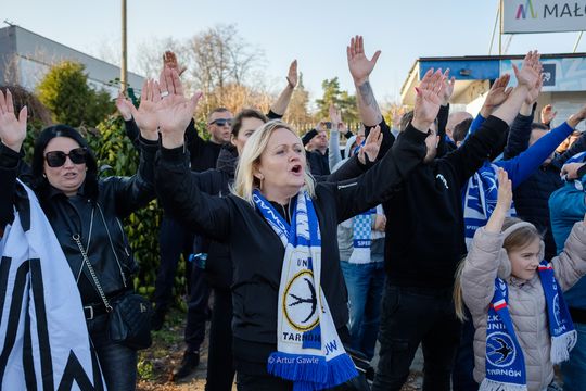 21 marca przed Stadionem Miejskim w Mościcach zebrało się około 100 kibiców żużlowych Unii Tarnów. Przez dłuższy czas rozlegały się głośne okrzyki i skandowania pełne żalu i złości. Fani w biało-niebieskich barwach trzymali transparenty i oddawali hołd klubowi, który właśnie przestał istnieć. To była emocjonalna, pełna bólu manifestacja na pożegnanie tarnowskiego żużla.