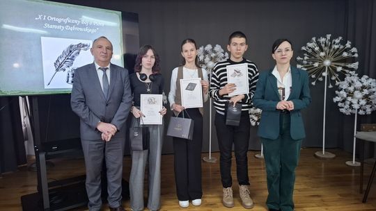 W murach Powiatowego Centrum Edukacji i Kompetencji Zawodowych w Szczucinie odbył się Konkurs Ortograficzny o Pióro Starosty Dąbrowskiego. Wydarzenie zgromadziło uczniów z różnych szkół powiatu, którzy zmierzyli się z niełatwymi zasadami polskiej ortografii, wykazując się wiedzą, koncentracją oraz umiejętnością poprawnego pisania.