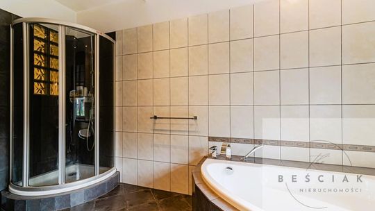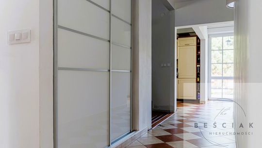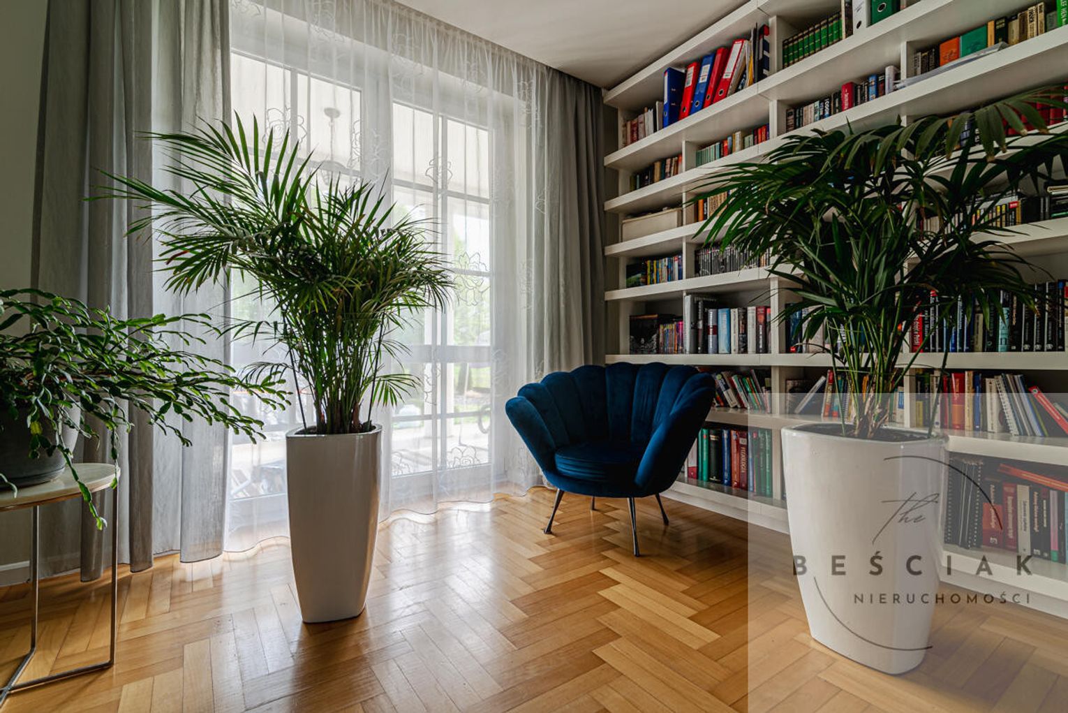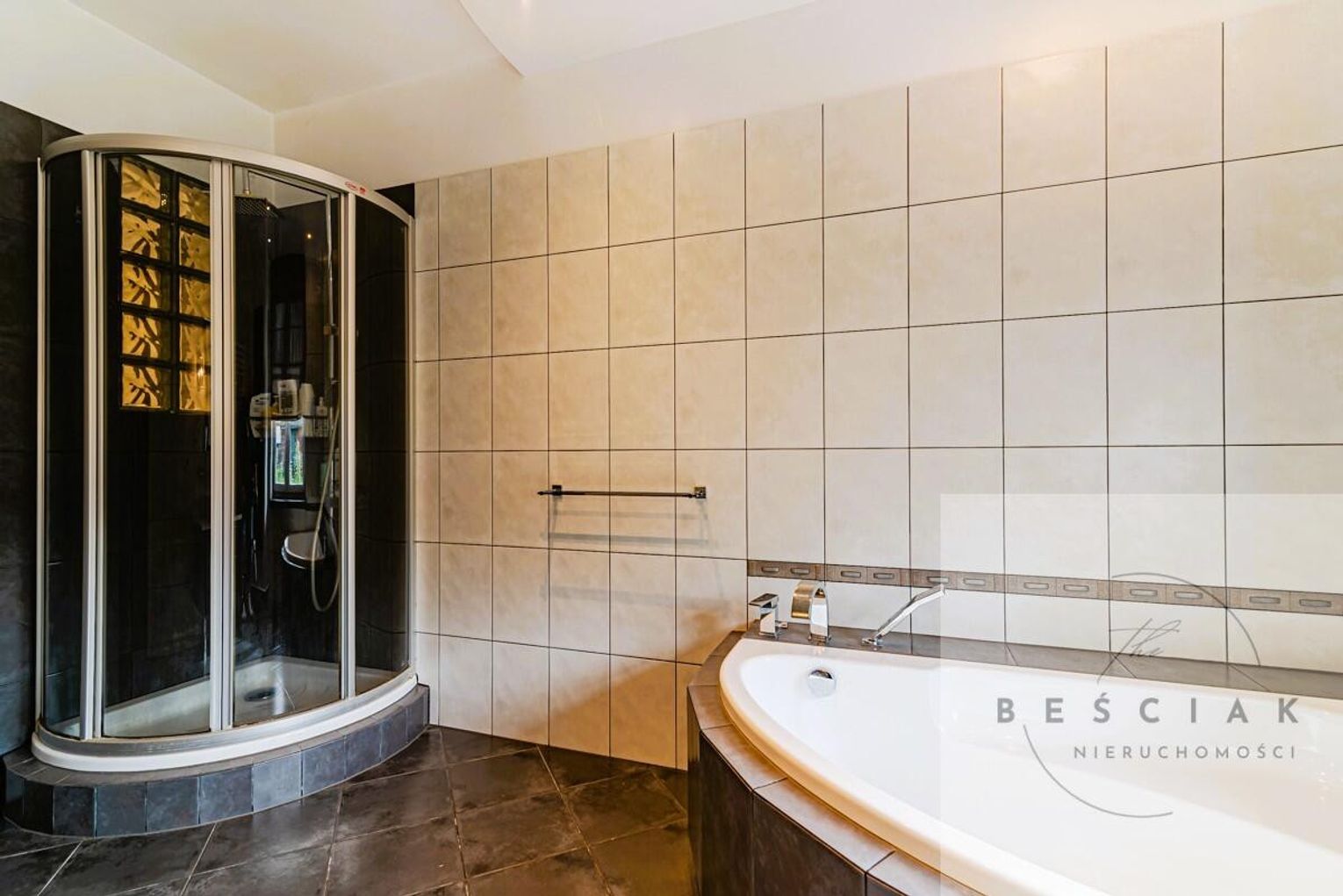 egzotyczne, drewniane schody, klimatyzacja, rekuperacja, okna dachowe z roletami zewnętrznymi.