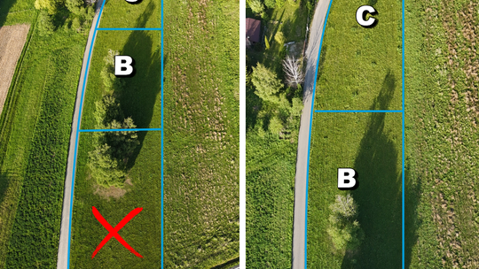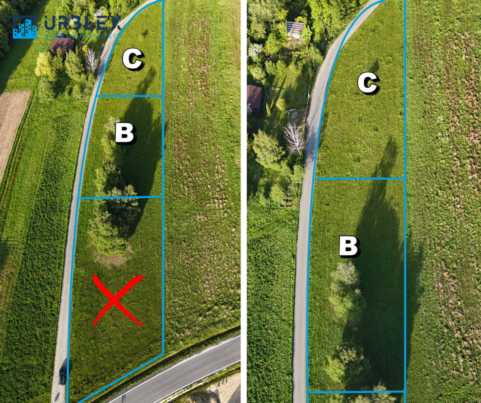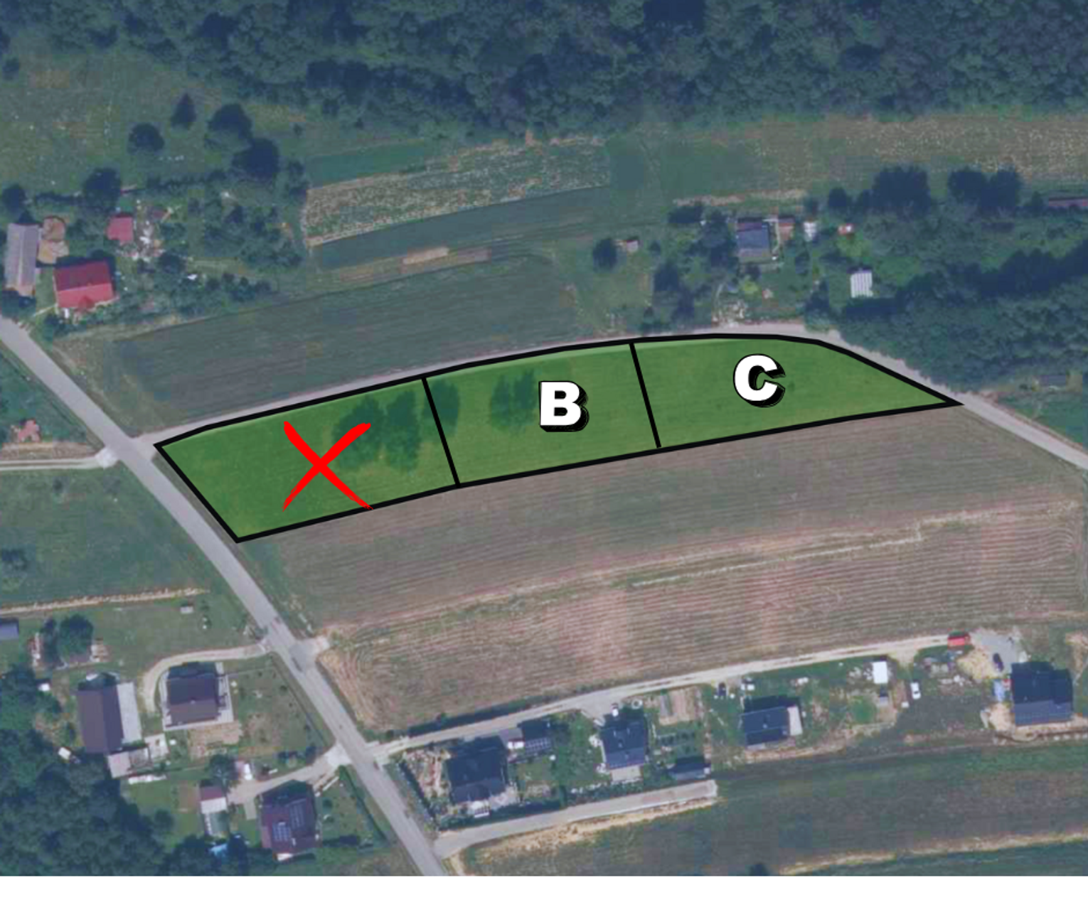 Oferujemy dwie działki o regularnym kształcie zbliżonym do prostokąta, zlokalizowane na lekkim wzniesieniu, co zapewnia piękne, piękne widoki gwarantowane!