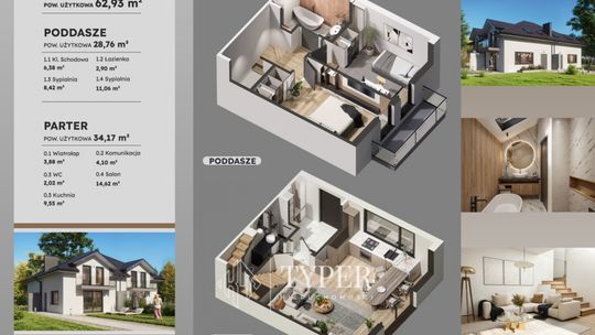 Cztery dwupoziomowe apartamenty po 62,93 m² każdy