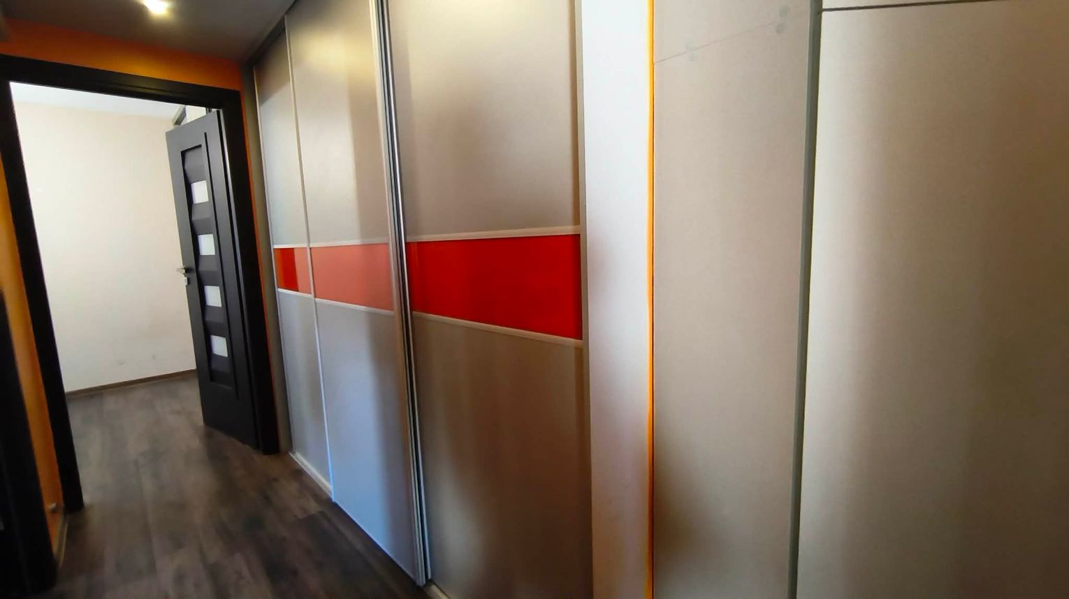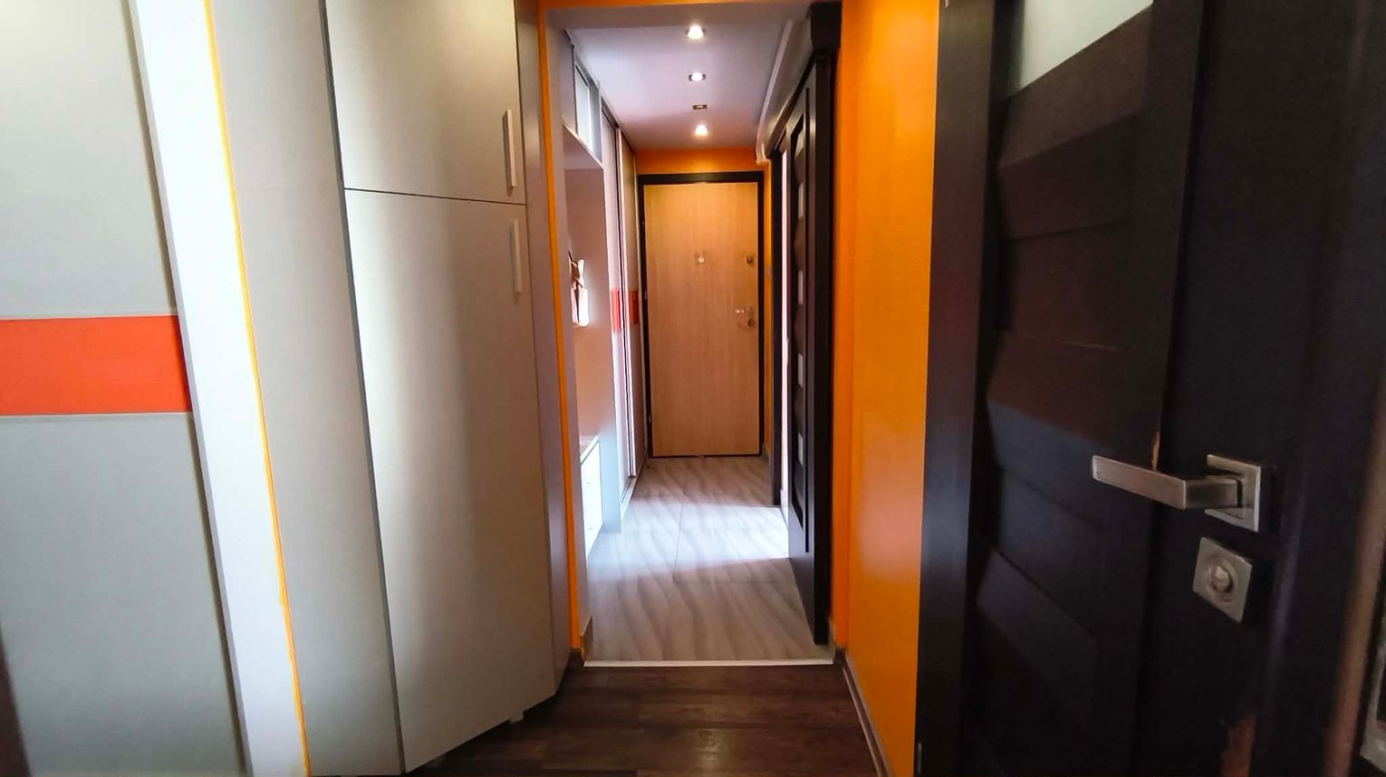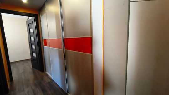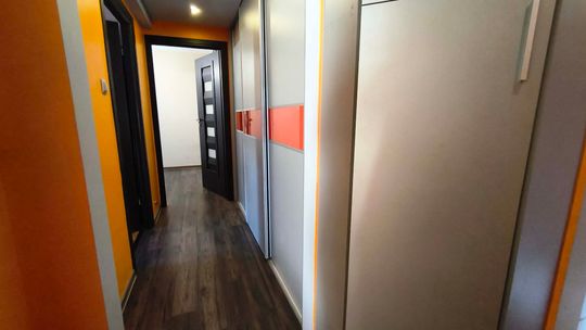 ✅ Przedpokój w literę L, wyposażony w duże, pojemne szafy w zabudowie, oraz szafki.
