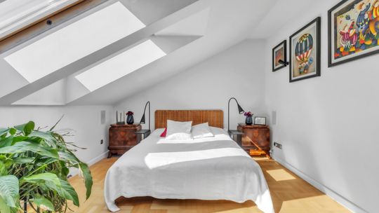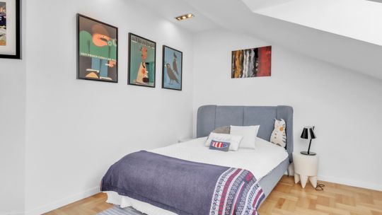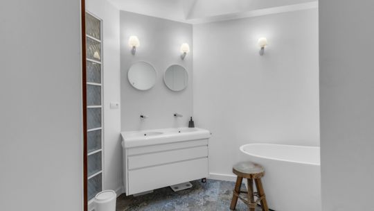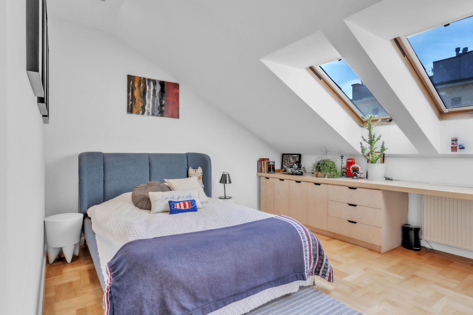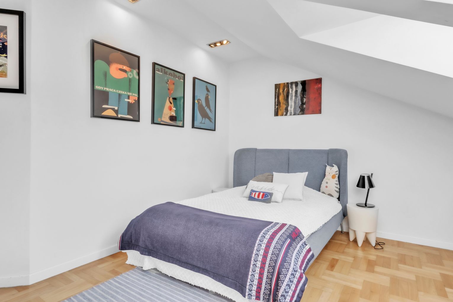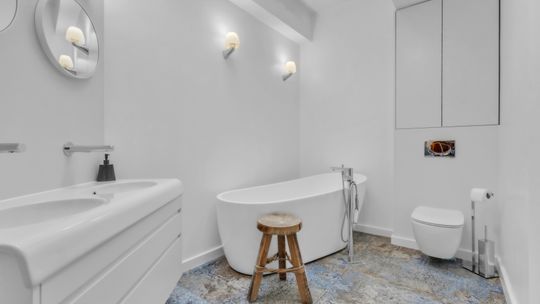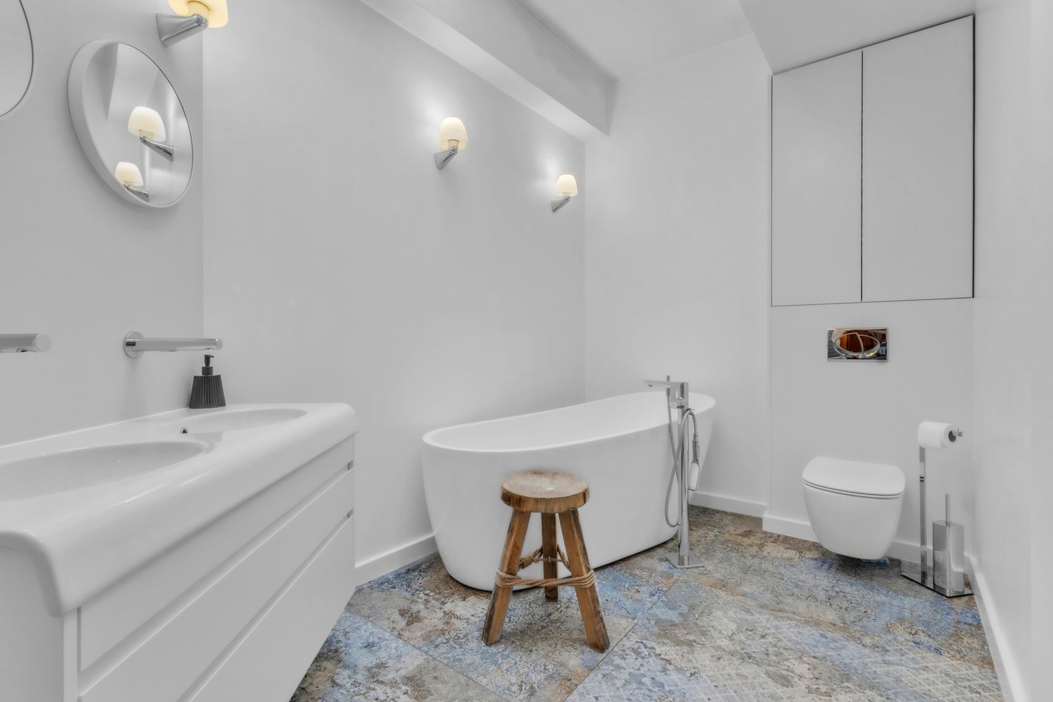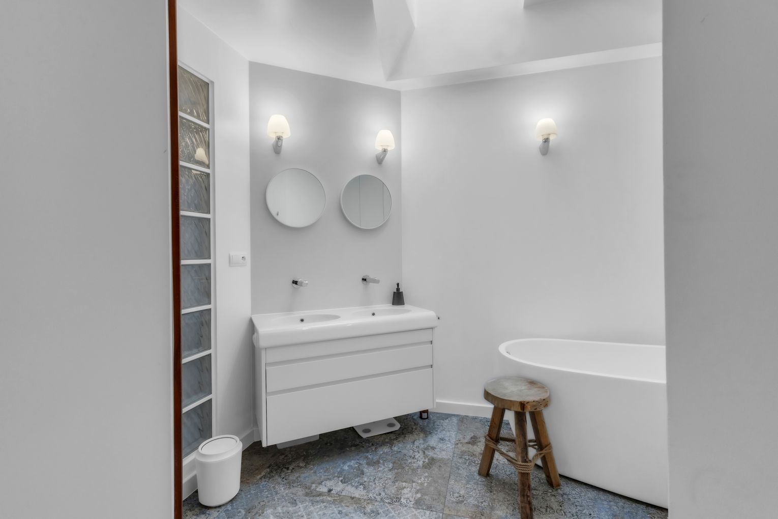 - reprezentacyjny pokój kąpielowy z oknem dachowym, wanną, osobną kabiną prysznicową i WC,