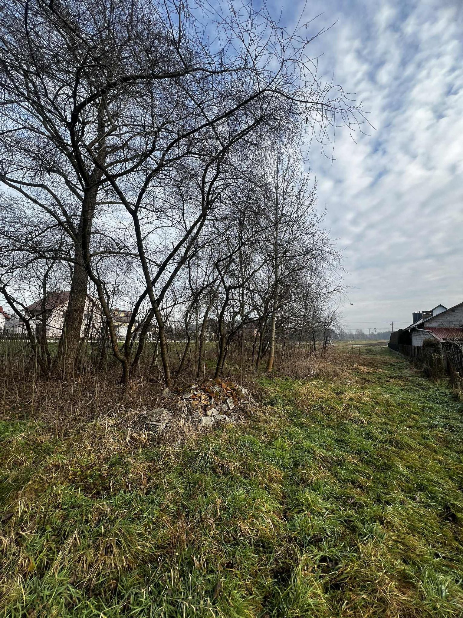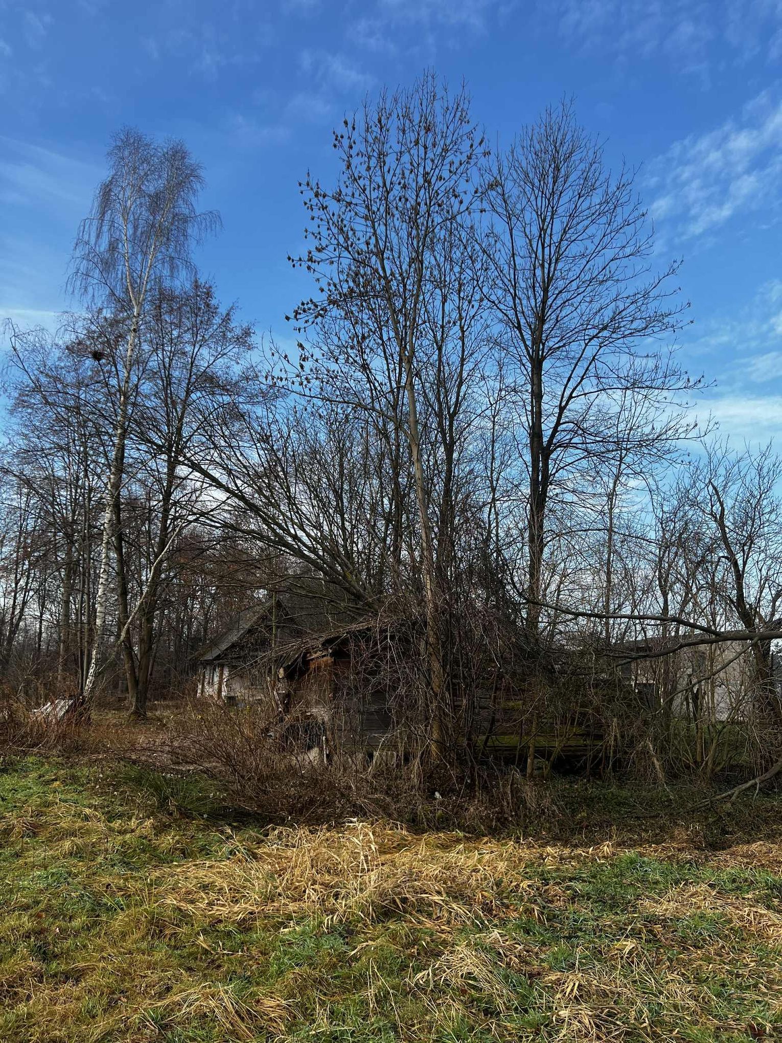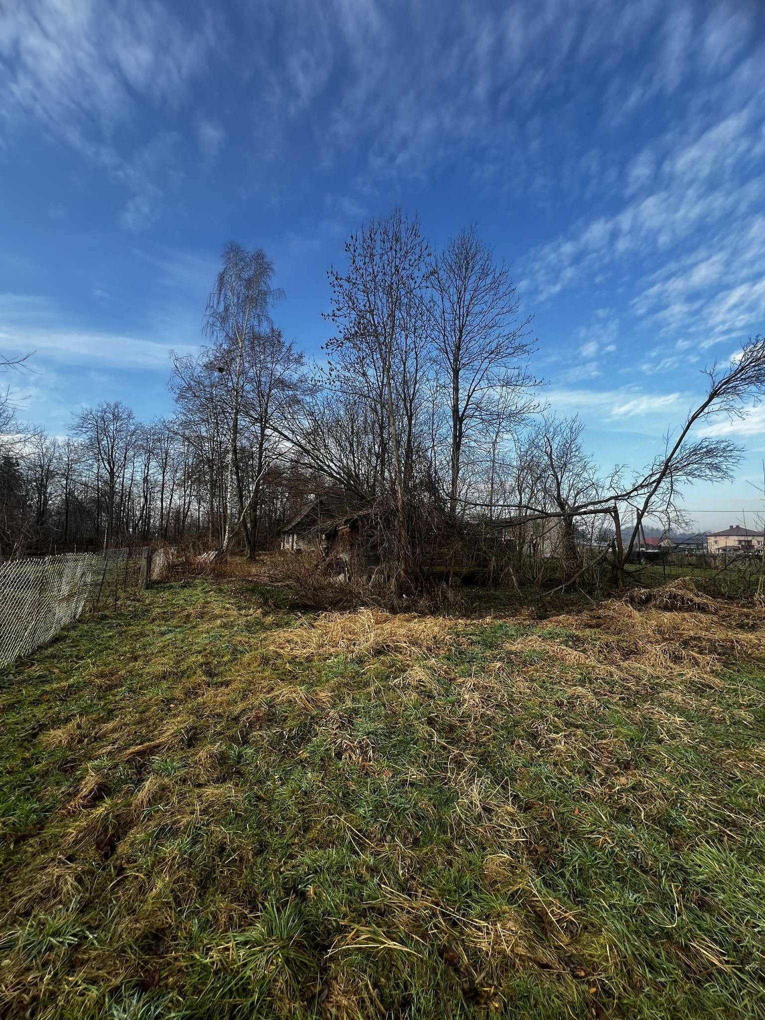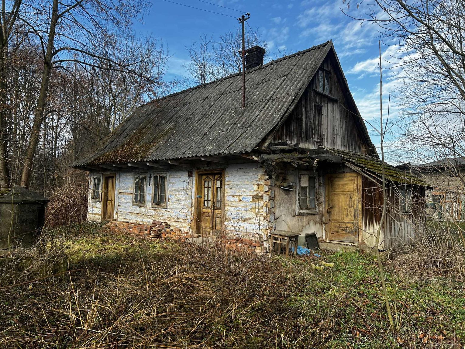 Na terenie działki znajduje się drewniany budynek o powierzchni około 70 m², przeznaczony do rozbiórki.