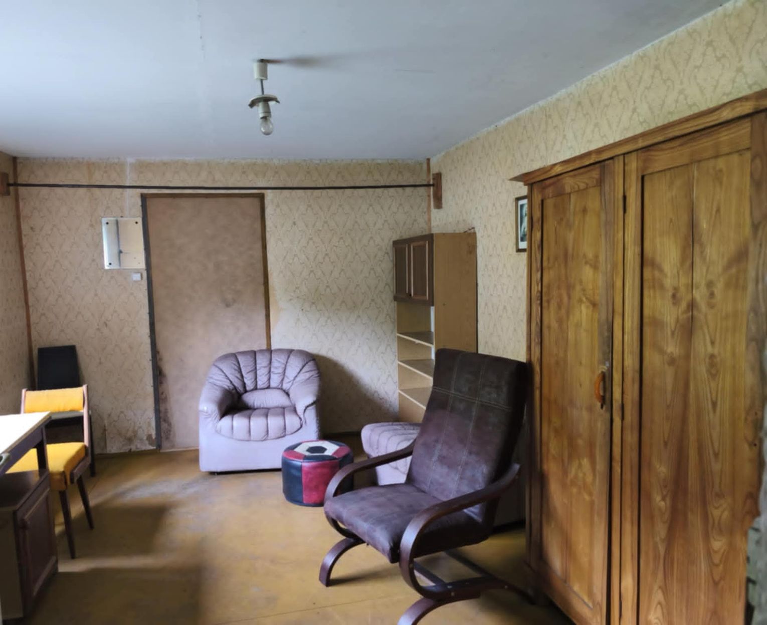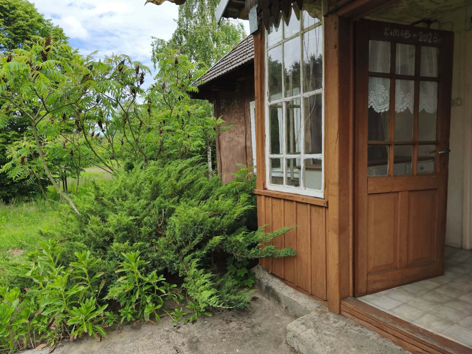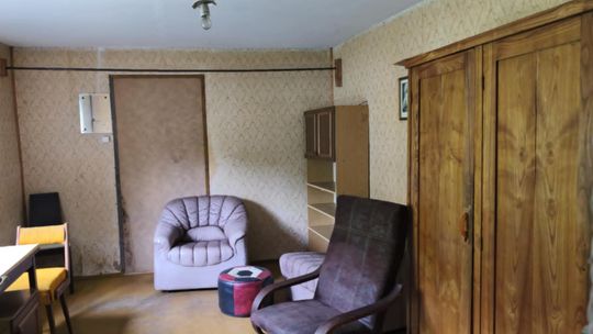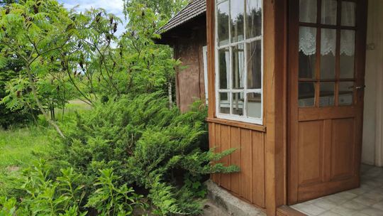 Opis nieruchomości: Dom parterowy, wybudowany w latach 60-tych, częsciowo murowany (od strony drogi), częściowo drewniany, pokryty dachówką cementową, oraz wyposażony w drewniane okna. W środku znajduję się: