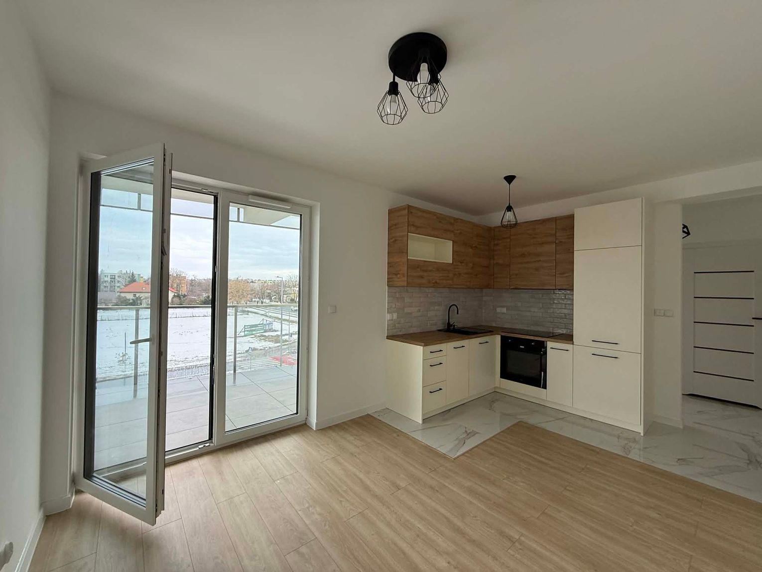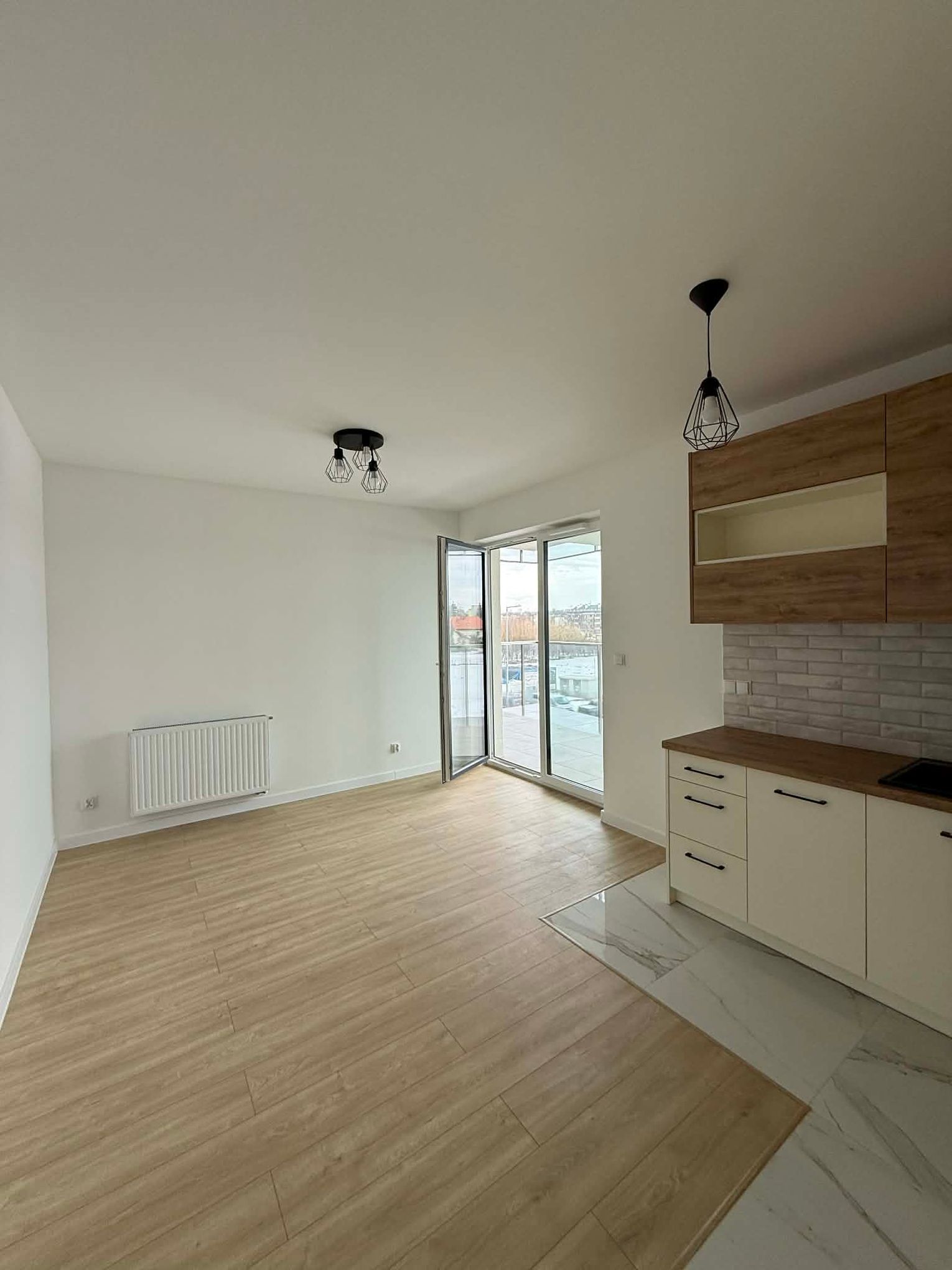 * salon z otwartą kuchnią,