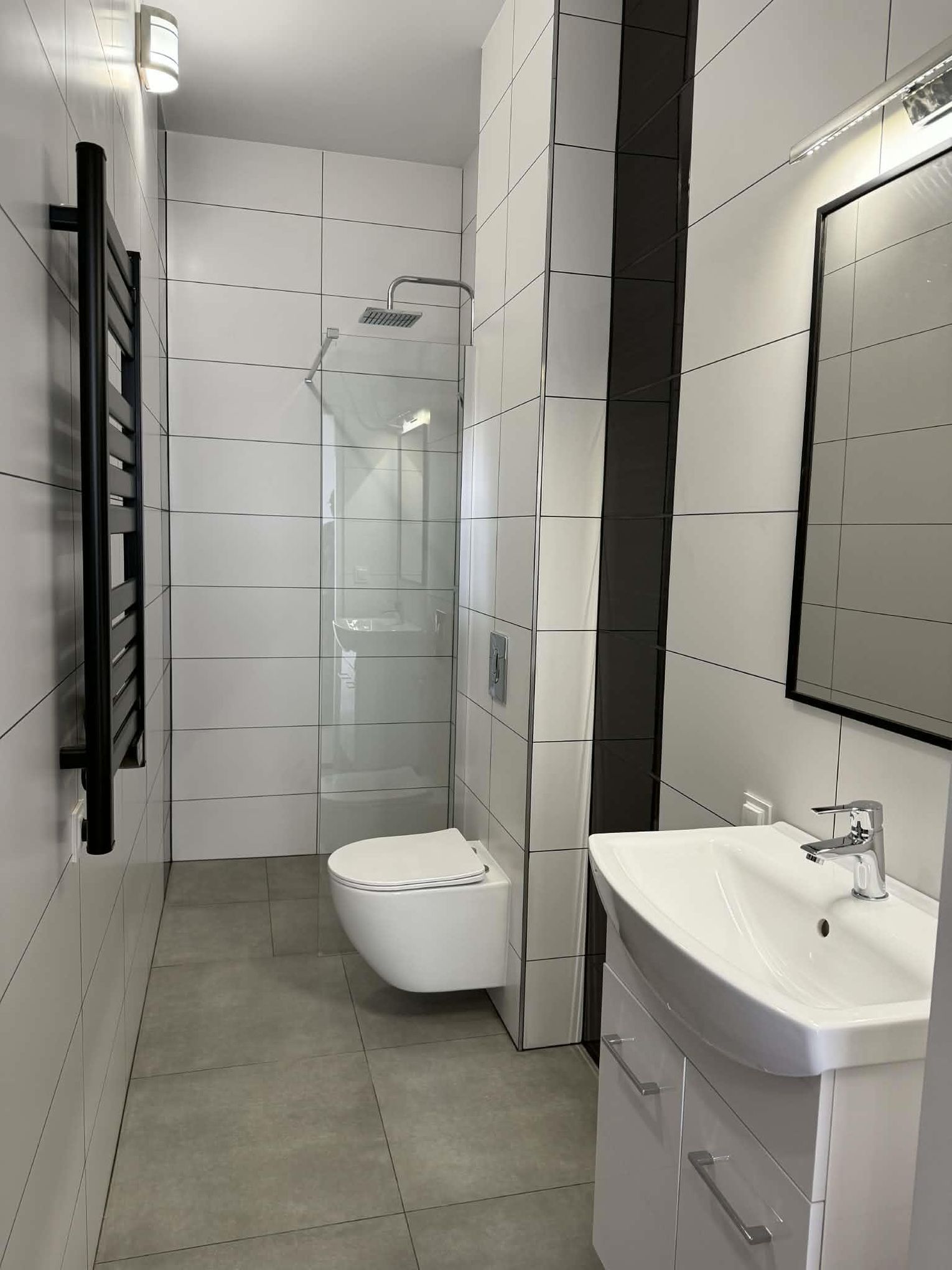 Układ mieszkania: dwa niezależne pokoje, oddzielna, ciemna kuchnia, łazienka z prysznicem i WC. Pokoje są obecnie puste, co daje możliwość aranżacji według własnych potrzeb istnieje opcja domeblowania po uzgodnieniu z właścicielem.