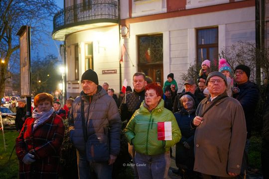 Wieczorne śpiewanie dla Niepodległej przed teatrem Solskiego [zdjęcia]