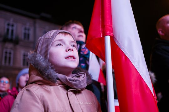 Wieczorne śpiewanie dla Niepodległej przed teatrem Solskiego [zdjęcia]