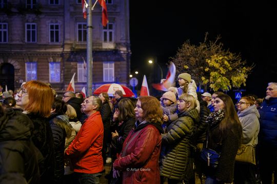 Wieczorne śpiewanie dla Niepodległej przed teatrem Solskiego [zdjęcia]