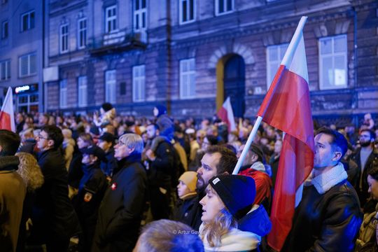 Wieczorne śpiewanie dla Niepodległej przed teatrem Solskiego [zdjęcia]