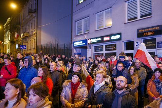 Wieczorne śpiewanie dla Niepodległej przed teatrem Solskiego [zdjęcia]