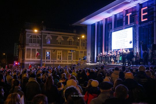 Zdjęcie: Wieczorne śpiewanie dla Niepodległej przed teatrem...