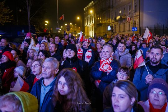 Wieczorne śpiewanie dla Niepodległej przed teatrem Solskiego [zdjęcia]
