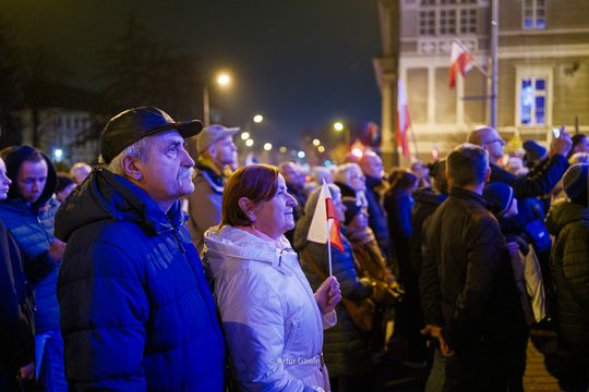 Zdjęcie: Wieczorne śpiewanie dla Niepodległej przed teatrem...