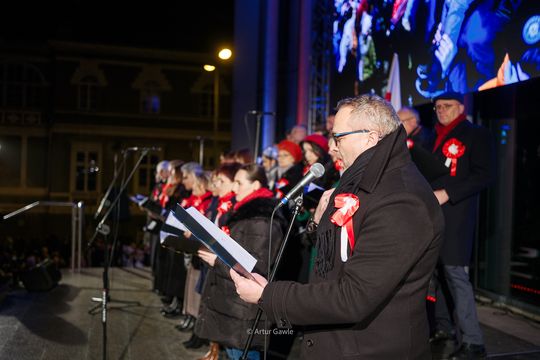 Wieczorne śpiewanie dla Niepodległej przed teatrem Solskiego [zdjęcia]