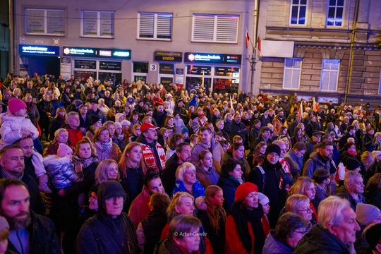 Wieczorne śpiewanie dla Niepodległej przed teatrem Solskiego [zdjęcia]