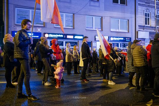 Wieczorne śpiewanie dla Niepodległej przed teatrem Solskiego [zdjęcia]