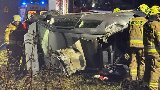 Zdjęcie: Dachowanie samochodu w powiecie brzeskim [zdjęcia]