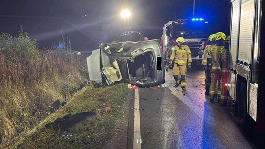 Zdjęcie: Dachowanie samochodu w powiecie brzeskim [zdjęcia]