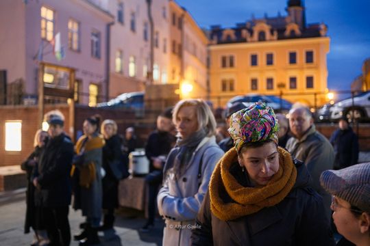 Zdjęcie: Tarnów obchodzi Chanukę. Świece zapłonęły pod Bimą...
